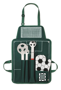 Grillforklæde med tre forskellige værktøjer og en handske. Forklæde i 600D polyester.