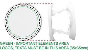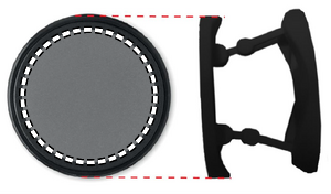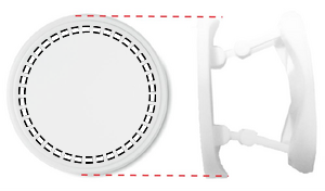 Rundformet foldbart telefontilbehør i ABS med to funktioner: telefonstander og holder. Den har 3M klistermærke på bagsiden.