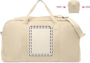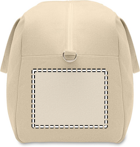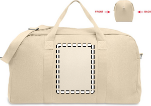 Rejsetaske i genbrugsstof på 450 g/m² (60 % genbrugsbomuld og 40 % genbrugspolyester) med justerbar og aftagelig bomuldsstrop.