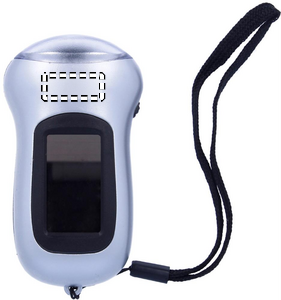 Lommelygte drevet af både solpanel og dynamo med 40 mAh batteri. ABS- kabinet med satineret sølvspray.