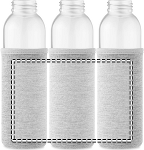 Genbrugsglasflaske med neoprenpose og PP-låg med silikoneophæng. Lækagefri. Kapacitet: 500 ml.