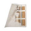 5 dele kontor sæt. Inkluder jute og bomulds taske, bambus linial, blyantspidser, viskelæder, papirblyant, kuglepen med karton krop og blå skrivefarve.