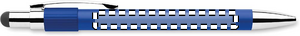 Stylus push ball spinner-pen i genbrugsaluminium. Blåt blæk.