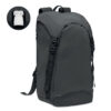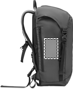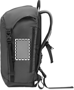 Rygsæk i 190T polyester belagt med reflekterende granulat. Yderlomme med lynlås i siden og polstret ryg, indvendig foring med snørelukning. Et stort polstret indvendigt laptoprum. Den har justerbare, polstrede skulderstropper og justerbar bryst- og taljerem med spændelukning. Vandafvisende.