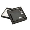Elegant gave sæt præsenteret på en EVA bakke og i karton æske. Inkluderer en twist ball pen med blå blæk, en metal nøglering med PU krog og en PU tegnebog. Alt PU med kontraststing.