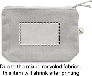 Kosmetik- og/eller tilbehørstaske i genbrugsstof (70 % genbrugsbomuld og 30 % RPET-polyester) med matchende lynlåstrækker. 320 gr/m².