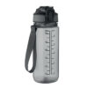 Motiverende sportsvandflaske i RPET med integreret sugerør, blødt silikonemundstykke, fliptop-låg, der kan åbnes med én hånd, sikkerhedslås. Med bærestrop i RPET-satin. Kapacitet 700 ml. Lækagefri.
