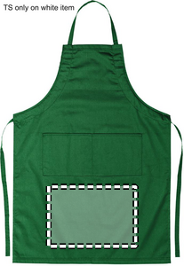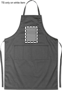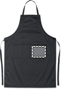 Justerbart køkkenforklæde med 2 lommer i 10% bomuld / 90% polyester, 190gr / m². Dette produkt er OEKO-TEX® STANDARD 100-certificeret.