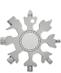 Multi-tool 17-in-1 stainless steel snowflake shaped. Optional metal ring included. This multi-tool is perfect for DIY projects and the amateur handyman. Use the ring to attach it to your toolbelt or other tools.