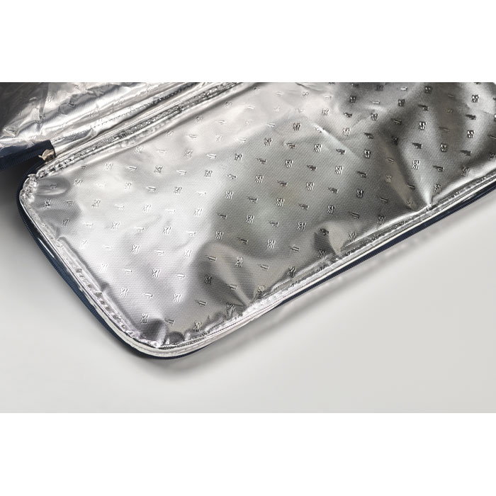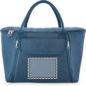 Picnic-køletaske i 600D RPET-polyester til 2 personer med lynlåslomme foran, inklusive bestik i rustfrit stål, 2 tallerkener i PS, 2 glas i PS og 2 bomuldsservietter.