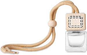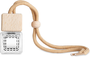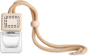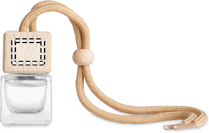 Genopfyldelig bil luftfrisker med ny bil duft diffusor med æteriske olier. Glasbeholder med låg i bøgetræ. Kapacitet 5 ml.