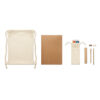 Tegnesæt til børn, herunder et 5-delt papirservicesæt med trælineal, træspids, viskelæder, træblyant og kuglepen af pap. Yderligere 10 farveblyanter, A4 genbrugspapir 50 almindelige ark (100 sider). Præsenteret i en bomuldspose med snor.