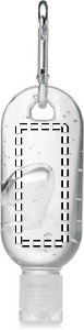 Håndrensningsgel i PET-genopfyldelig flaske med flip cap og karabinhætte. Ikke-alkohol formulering. Kapacitet 30 ml.
