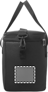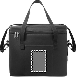 Køletaske i 600D RPET polyester med PU-belægning. Inklusive 1 frontlomme og 1 indvendig netlomme. Isolerende PEVA-foring med 6 mm PE-skum. Inkluderer 2 håndtag og 1 justerbar skulderstrop.