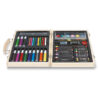 Kunstner sæt i trææske med 66 stk. (Vokskridt, oliepastaer, markører, farveblyanter, vandfarver, blyantspidser, lim, viskelæder, pensel, linial og blyant).