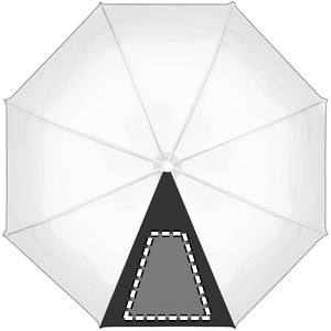23 tommer lige paraply i POE med PG-piping og 1 panel i polyester til trykområde. Manuel åbning. Glasfiber, ribber og ramme. Forkromet skaft med plastspidser. Håndtag med gummifinish.