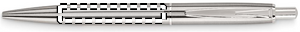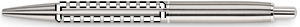 Trykknapkuglepen lavet i genbrugt rustfrit stål. Leveres i korkæske. Blå blæk.
