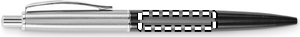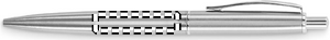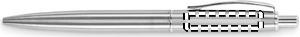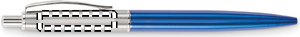 Kuglepen med trykknap og skaft af genanvendt rustfrit stål. Blåt blæk. Leveres i sort æske.