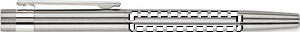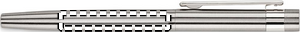 Penssæt lavet i genbrugt rustfrit stål med kuglepen og rullepen. Leveres i korkæske. Henholdsvis blå og sort blæk.