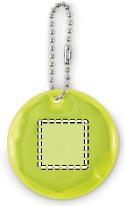 Rund reflekterende nøglering i PVC. Til reklamebrug.