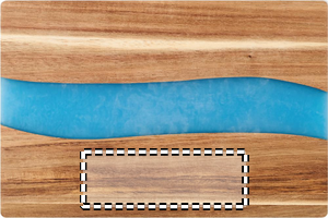 Skærebræt af akacietræ med epoxyharpiksdetalje.