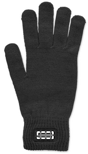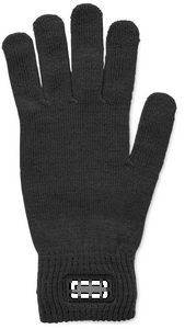 Strikkede handsker i blød, strækbar RPET-polyester med mærke.