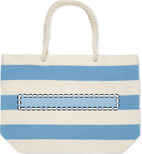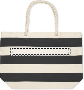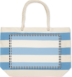 Stribet strand- eller indkøbspose i bomuld med snorehåndtag. 220 gr/m².