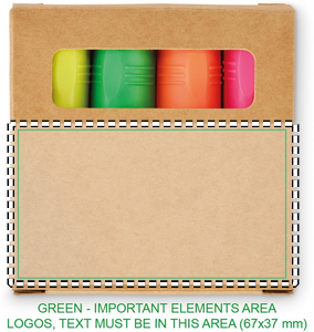 Sæt med 4 overstregningstuscher i en kraftæske.