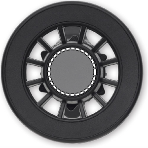 magnetisk telefonholder i ABS, der kan drejes 360 grader. Inkluderer en ekstra magnetisk metalring til opladning af ikke-magnetiske telefoner med trådløs opladning.