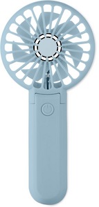 Bærbar, foldbar ventilator i ABS med 3 hastighedsindstillinger. Kan bruges som håndholdt eller skrivebordsventilator. Inkluderer 1 udskifteligt og genopladeligt 14500 litiumbatteri på 500 mAh.