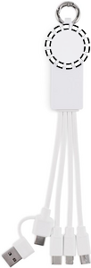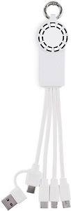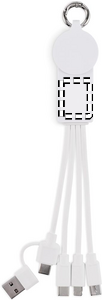Nøglering med opladerkabel med input: 2-i-1 type-C og type-A. Udgang: Uropladning (Samsung® og Apple®), 2 x type-C og micro-B (2 i 1 pin). Kabel lavet af genanvendt TPE.