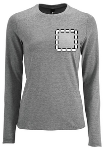 SOL'S IMPERIAL dame-T-shirt 190 g. Ribkant ved halsudskæringen. Lange ærmer. Skåret og syet. Tætsiddende pasform. Tape indeni halsudskæringen. Stofdetaljer: 100 % halvkæmmet ringspunnet bomuld. Se størrelsesguiden i produktdokumentationen for at finde den rigtige størrelse.