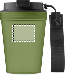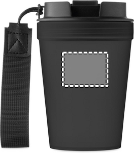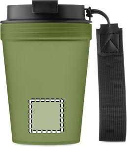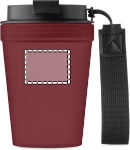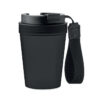 Enkeltvægsglas i PP med RPET-polyesterstrop. Lækagefri. Kapacitet: 300 ml. Da dette er et enkeltvægget glas, kan der stadig forekomme varmeoverførsel.