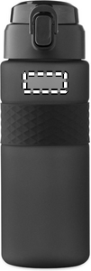 Drikkeflaske fremstillet af RPET med silikonegreb, PP-flip-top-låg og sikkerhedslås. Inklusive integreret sugerør. Lækagefri. Kapacitet: 700 ml.
