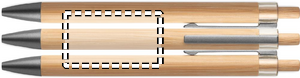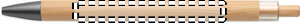 Trykknap-pen med skaft af bambus og metalclip. Blåt blæk.