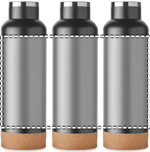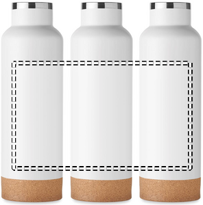 Dobbeltvægget vakuumisoleret flaske i genanvendt rustfrit stål med håndtagslåg og korkdetalje i bunden. Lækagefri. Kapacitet: 500 ml. (90 % genanvendt rustfrit stål og 10 % rustfrit stål).