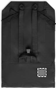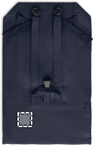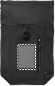Rolltop-rygsæk med velcrolukning i 390 gr/m² genanvendt bomuld (80 %) og genanvendt polyester (20 %). Forlomme med lynlås.