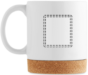 Keramisk krus med særlig belægning til sublimeringstryk og korkbund. Kapacitet: 280 ml.