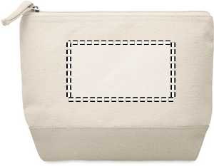 Cosmetic bag in cotton with coloured bottom and matching zipper puller. 340 gr/m².
