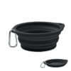 Sammenklappelig, bærbar drikke- eller madskål i silikone til kæledyr med karabinhage. Kapacitet: 350 ml.