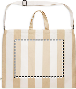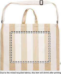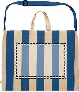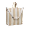 Ekstra stor stribet strandtaske i 280 gr/m² genanvendt bomuld (80 %) og genanvendt polyester (20 %) med inderlomme. Korte håndtag og en stor, justerbar skulderrem.