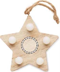 Dekoreret julestjerne i træ (80% poppeltræ og 20% ukrudtstræ) med 5 LED-lys og hængesnor. Inklusiv 1 CR2032 batteri.