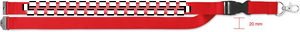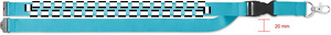 Bomuldslanyard med metalkrog, aftageligt spænde og sikkerhedspænde i nakken. 20 mm bred.