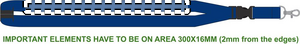 Nøglesnor med metalkrog, aftageligt spænde og sikkerhedsmekanisme.