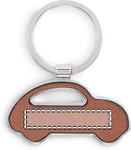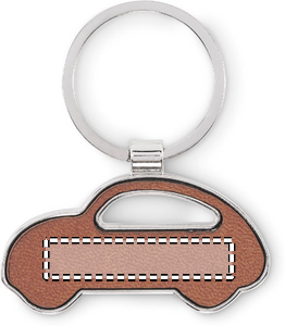 Bilformet metalnøglering med indlæg af genanvendt PU-læder.