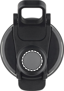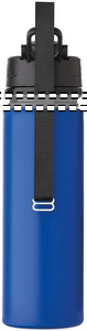 Sammenklappelig silikonesportsflaske med PP-låg, håndtag, polyesterstrop og gennemsigtigt spænde til fastgørelse i sammenklappet tilstand. Lækagefri. Kapacitet: 500 ml.