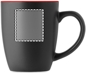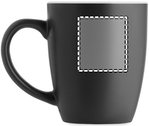Sort mat keramisk krus med skinnende farvet inderside. Kapacitet: 290 ml. Med en særlig belægning til lasergravering