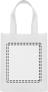 Lille gave- eller goodiebag i RPET non-woven med korte hanke og kile i bunden. 80 gr/m².