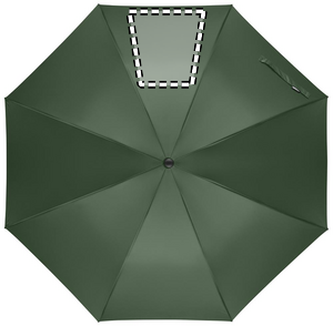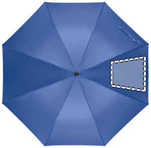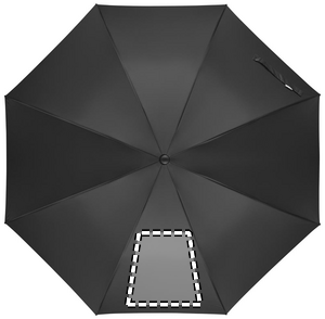 27 tommer automatisk åben vindsikker paraply i 190T RPET pongee. Skaft og ribber i glasfiber. Håndtag af genanvendt hvedestrå og ABS. Plastspidser og top.