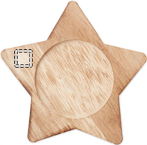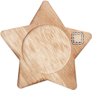 Star shaped wooden decorative base with vanilla fragranced candle.